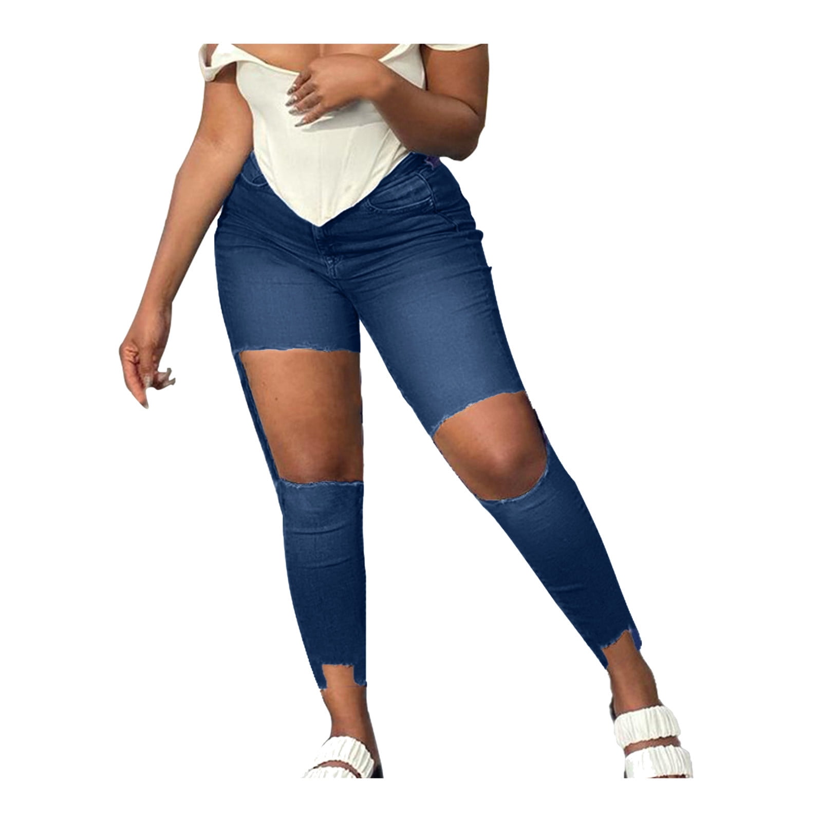 Eumodr Beach Pants Straight Ripped Baggy Casual Jeans Pants Waisted Trousers Denim Women S High Pants Sweatpants Women With Pockets Walmart Com